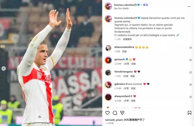 米兰青训破旧主!科隆博社媒晒谢场照:在圣西罗进球的感觉很特别